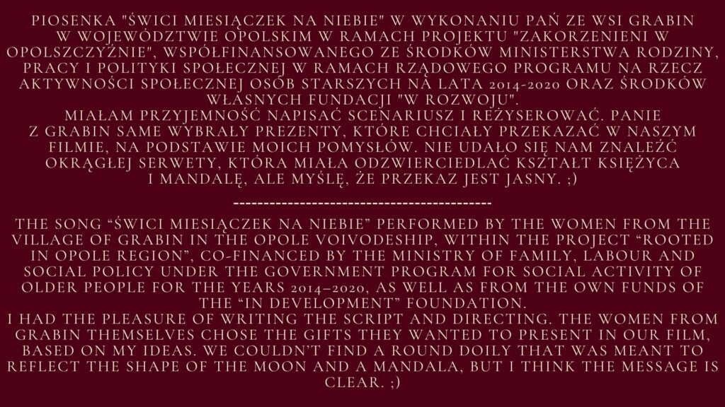 W 2009 lub 2010 roku zostałam zaproszona przez kolegę ze studiów, Dominika Wawrzyniaka, do zagrania roli kapłanki w zwiastunie do ogólnopolskiego LARPa organizowanego przez jego rodzinę i przyjaciół. Towarzyszyli nam rycerze, którzy robią prezentacje m.in. walk na miecze na Opolszczyźnie od lat i działali w środowisku rekonstrukcji historycznych.