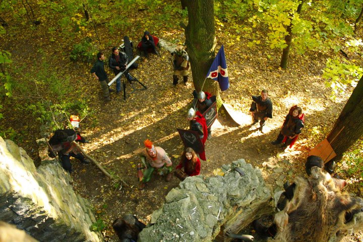 Jako kapłanka miałam na sobie płaszcz pożyczony przez kolegów od księdza, przed zdjęciami przygotowałam jeszcze krasnoludowi oczekiwaną fryzurę, a później zostałam porwana przez orka… Realizację miałam okazję obejrzeć na „wielkim ekranie” podczas projekcji na zamku. Niezapomniany widok. 😉