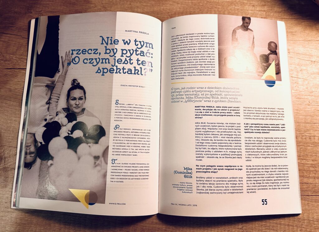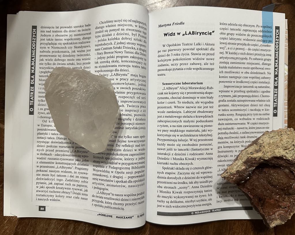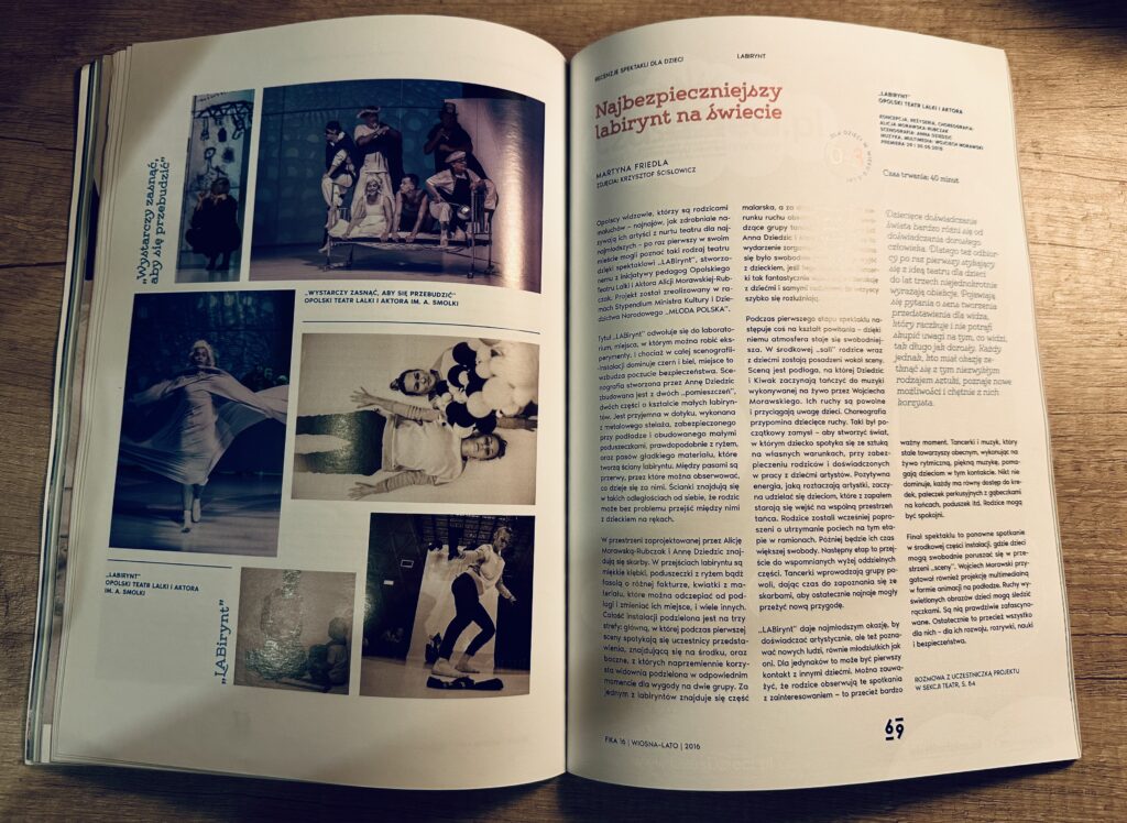 Mój artykuł na temat spektaklu „LABirynt” dla widzów najmłodszych, czyli do lat 3, zrealizowanego przez reżyserkę i pedagożkę teatru Alicję Morawską-Rubczak, przybliżający nauczycielom specyfikę teatru dla widzów, którzy inaczej doświadczają teatru niż często widzowie starsi, szczególnie ci, którzy nie mieli wczesnych doświadczeń ze sztuką teatru.