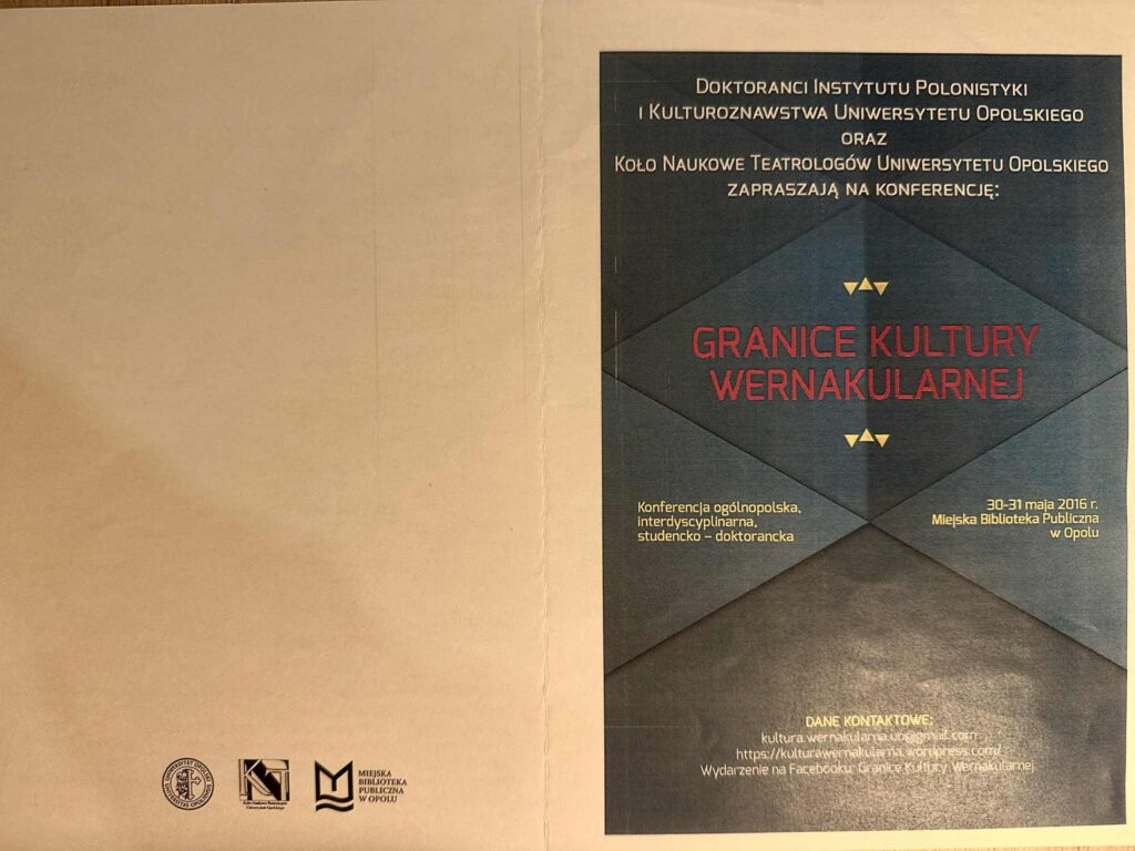 The conference was organized by the Doctoral Students’ Scientific Circle at the Department of Cultural Studies, the Department of Ethnology and Cultural Anthropology, the Institute of Cultural Studies, the Institute of Art History at the University of Wrocław, as well as the Department of Art Mediation at the Eugeniusz Geppert Academy of Fine Arts in Wrocław”.