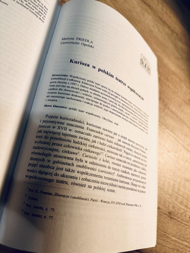Konferencja, którą zainicjowałam, nie miałaby miejsca, gdyby nie współorganizacja doktorantów Pauliny Gowin, Łukasza Słońskiego, studentów Łukasza Koziołka, Adrianny Warzechy, Anety Plinty i pozostałych zaangażowanych członków Koła Naukowego Teatrologów i przyjaciół oraz poparcie przedstawicieli kadry Uniwersytetu Opolskiego, dr Agnieszki Wójtowicz i dr hab. Sabiny Brzozowskiej-Dybizbańskiej, prof. Uniwersytetu Opolskiego.