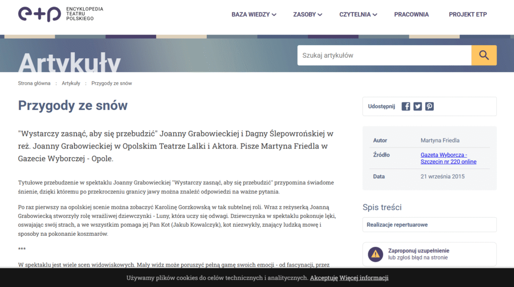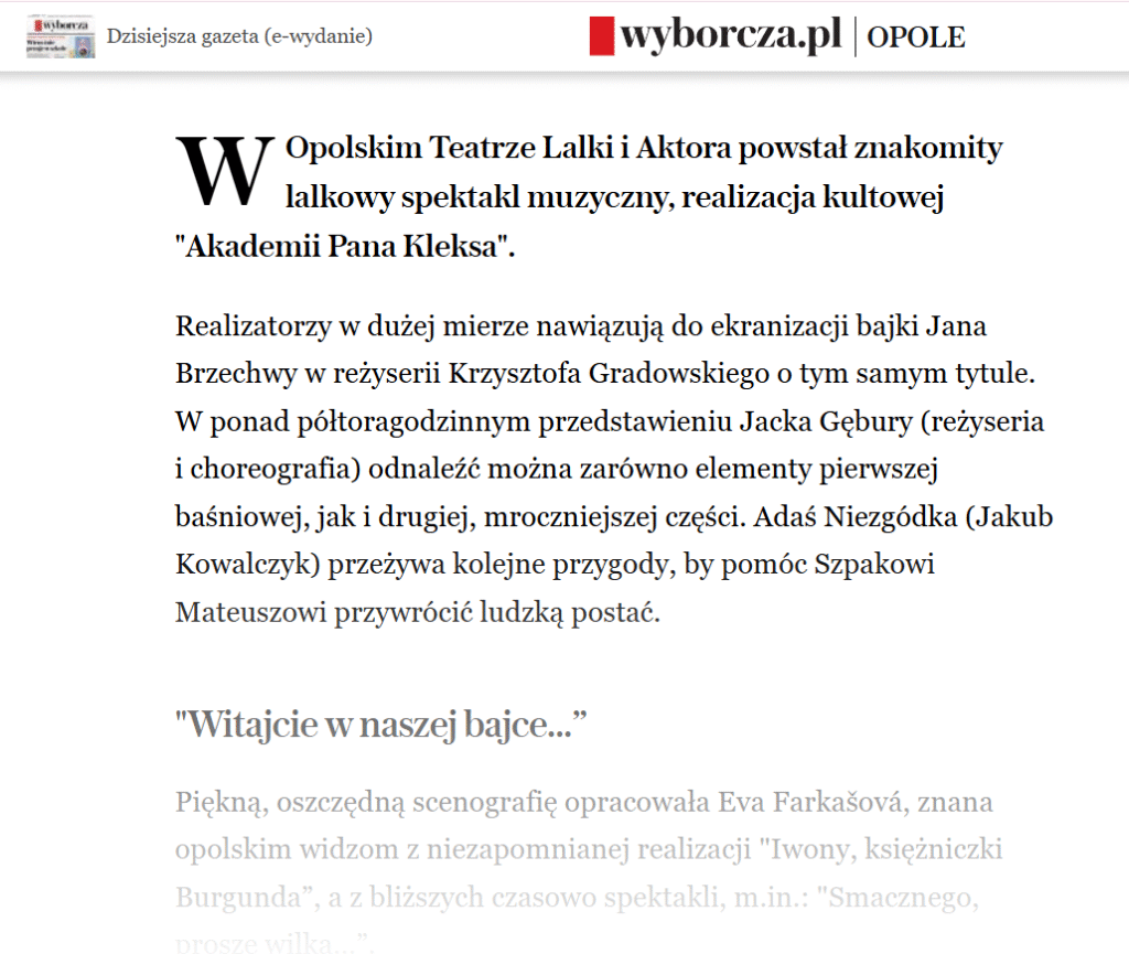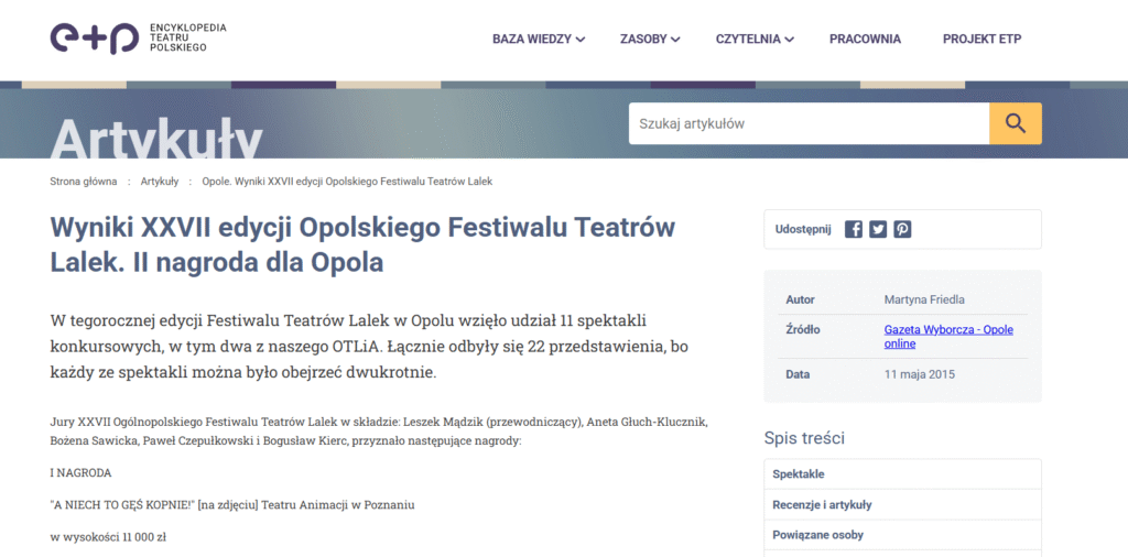Wywiady i recenzje spektakli z Opolskiego Teatru Lalki i Aktora i Wrocławskiego Teatru Lalek