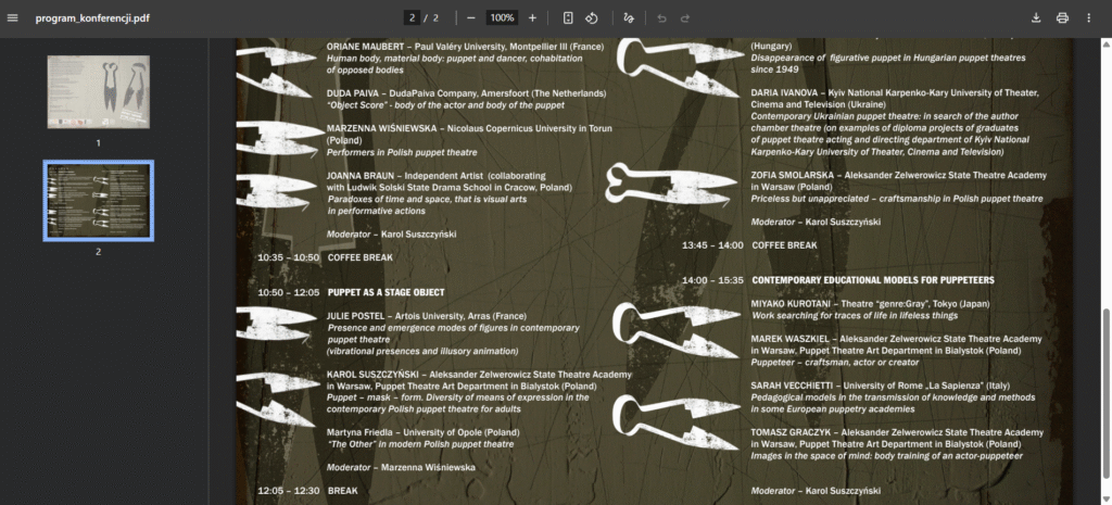 The organizers would like to thank the Theatre Institute for providing the space, covering accommodation costs for participants from outside Warsaw, and for the warmth and belief in the value of this meeting. It is also very important to us that the Forum took place under the auspices of the Polish Society for Theatre Research. This is a sign to young researchers that they are not working in a vacuum and that the path to cooperation between Forum participants and the Society is open.