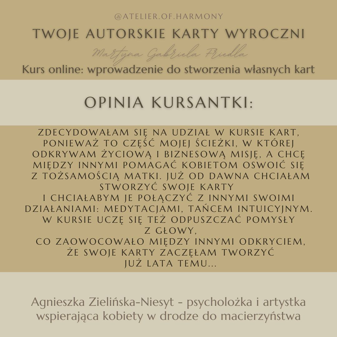 Jeśli woła Cię taki klimat pracy nad Twoimi Kartami Wyroczni, dołącz do kursu, który od kilku lat rośnie i który będzie Cię wspierał w tym rozdziale Twojego życia, a przy okazji poznasz inne osoby, które mają podobne marzenie i będą Twoim towarzystwem mocy w tej podróży.